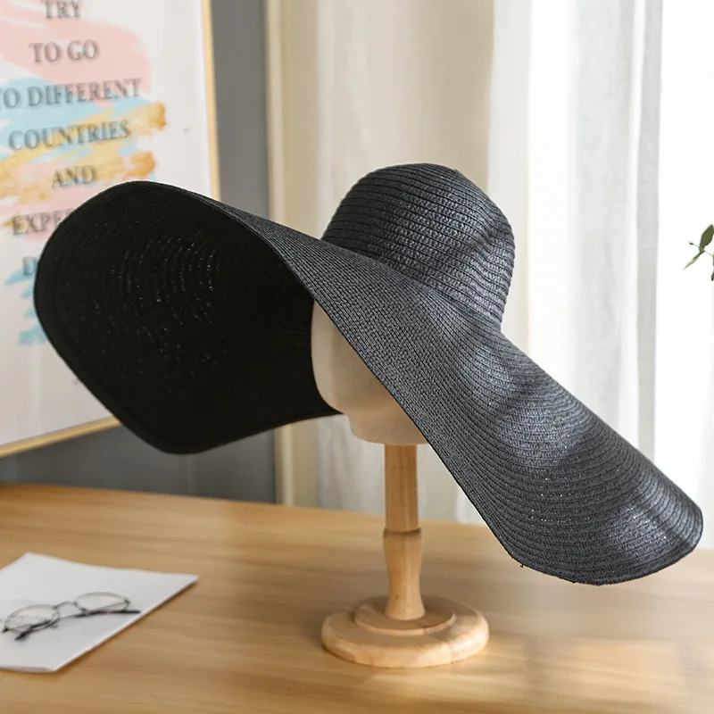 Шляпа женская Соломенная с широкими полями, однотонная Панама в стиле ретро, складная шапка от солнца, для пляжа, летняя