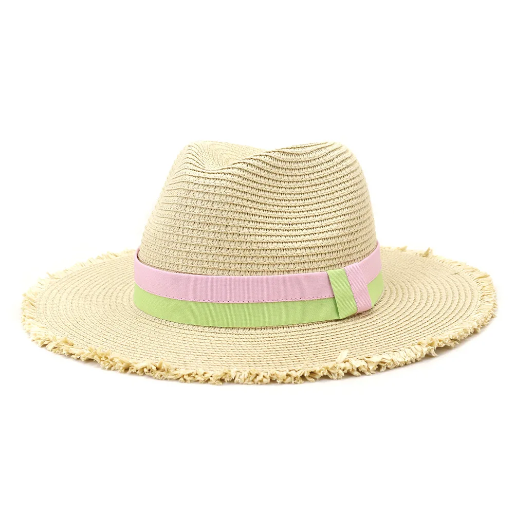 Шляпа женская Соломенная с широкими полями, простая уличная дорожная Панама от солнца, джазовая шапка с цветным ремнем, летняя