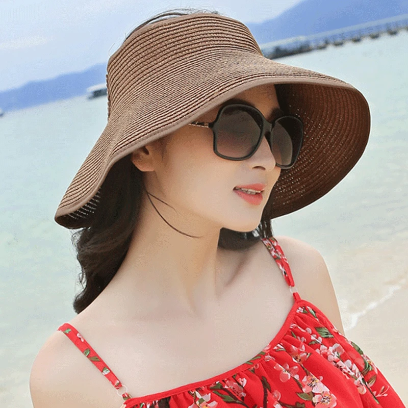 Шляпа женская Соломенная с широкими полями, солнцезащитный козырек от солнца, крутая дорожная пляжная Складная шапка для защиты от солнца, s...