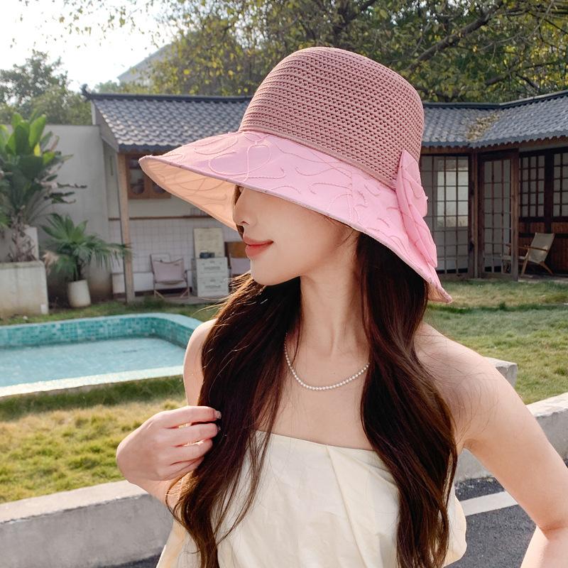 Шляпа женская вязаная соломенная шляпа летняя с бантом шляпа-ведро для улицы путешествий солнцезащитная шляпа Average size