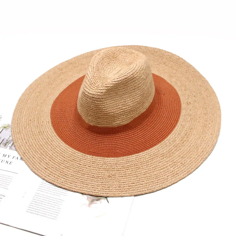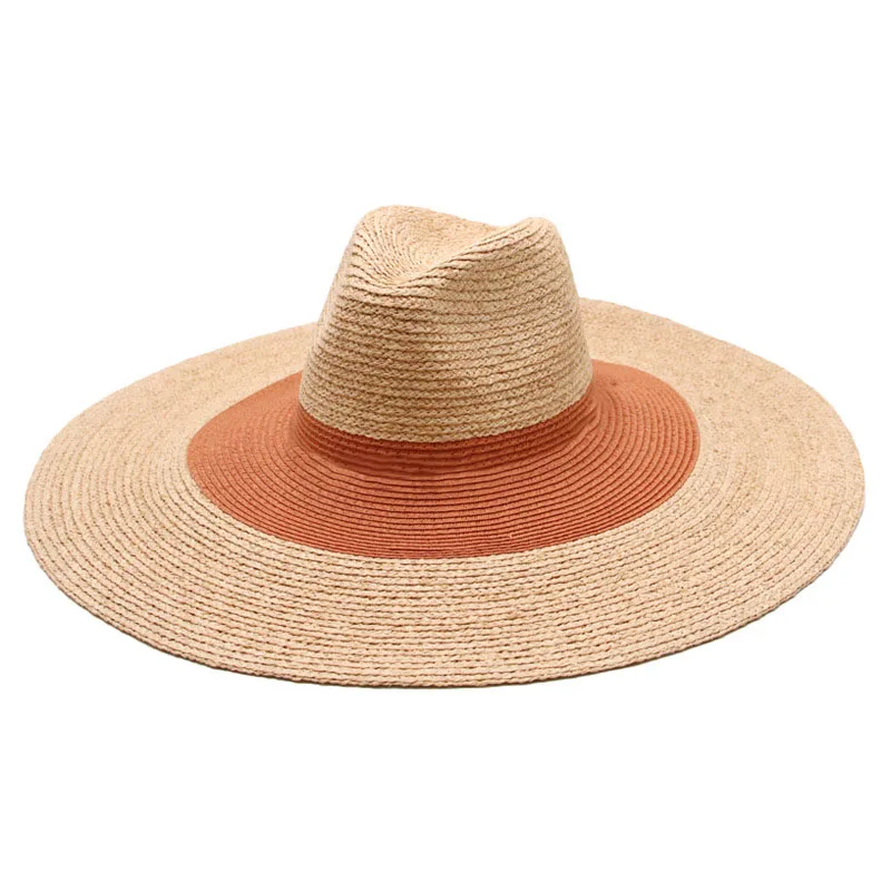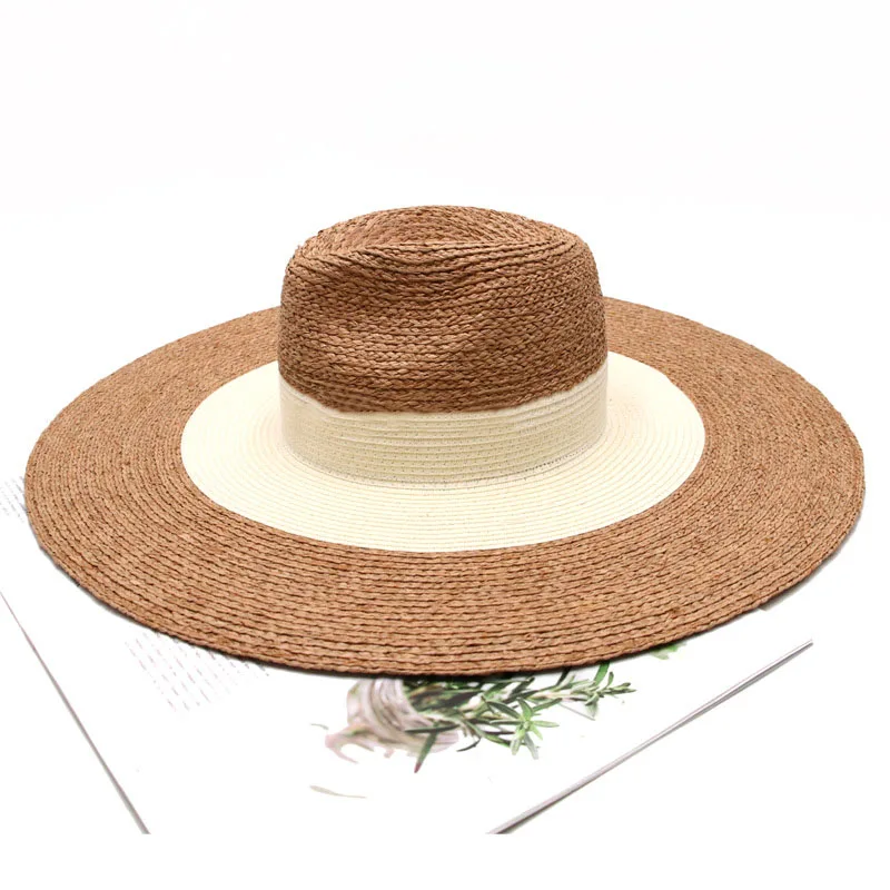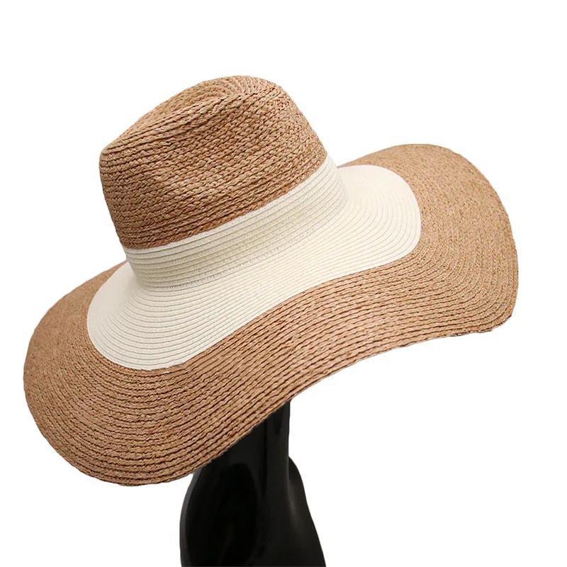 Шляпа женская из рафии с широкими полями, Соломенная Панама с двумя оттенками, с защитой от ультрафиолета, летняя шапка для отдыха, Дерби