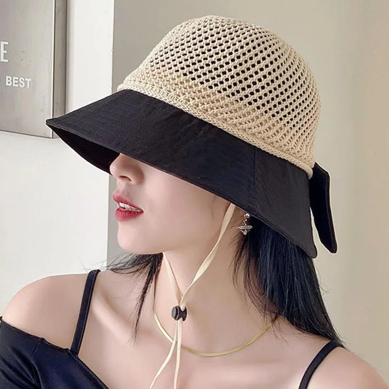 Шляпа женская пляжная соломенная с бантом, воздухопроницаемая Панама от солнца с большими полями, для отдыха на открытом воздухе и путешест...