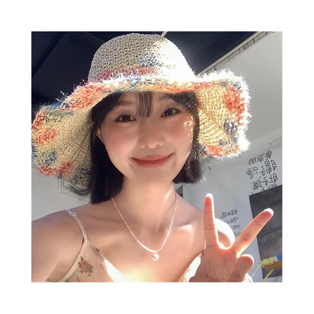 Шляпа от солнца для женщин, цветная Соломенная Панама ручной работы, для отдыха на море и в отпуске, Пляжная с широкими полями, J8H4, летняя