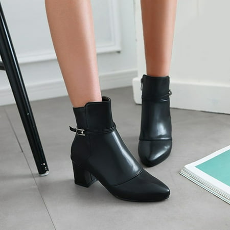 KEUSN Mens Simple Solid Color Leather Belt Buckle Side Zipper Thick High Heel Short Boots