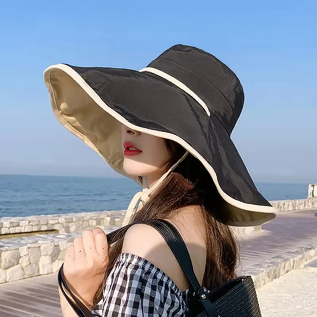 Шляпа от солнца с широкими полями UPF 50 +, женская шляпа с защитой от УФ-лучей для пешего туризма и рыбалки, летняя однотонная Складная пляжная ...