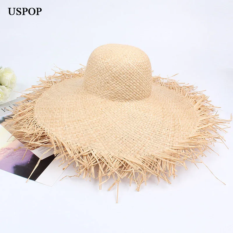 Шляпа от солнца USPOP из рафии с широкими полями женская, Соломенная Панама ручной работы, натуральная пляжная шапка с защитой от ультрафиолет...
