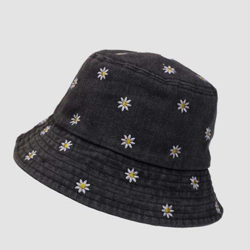 Шляпа рыбака с вышитым хризантемами и улыбающимся лицом ковбоя, женская солнцезащитная шляпа