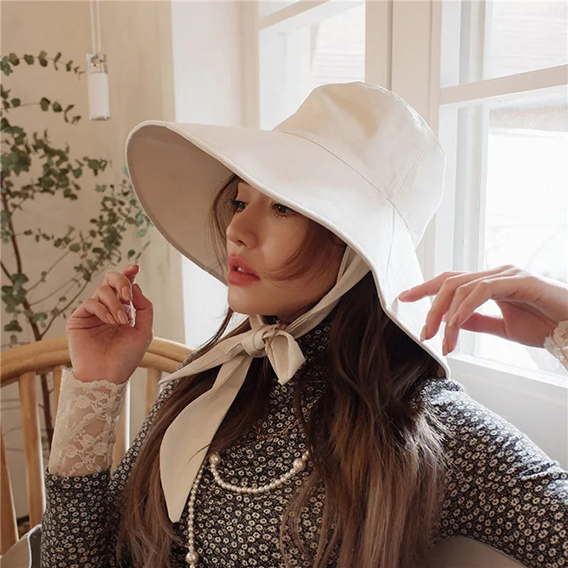 Шляпа рыбака с широкими полями женская, хлопковая льняная шляпа с Круглым Куполом и бантом, складная Солнцезащитная шапка, ручная работа, ве...