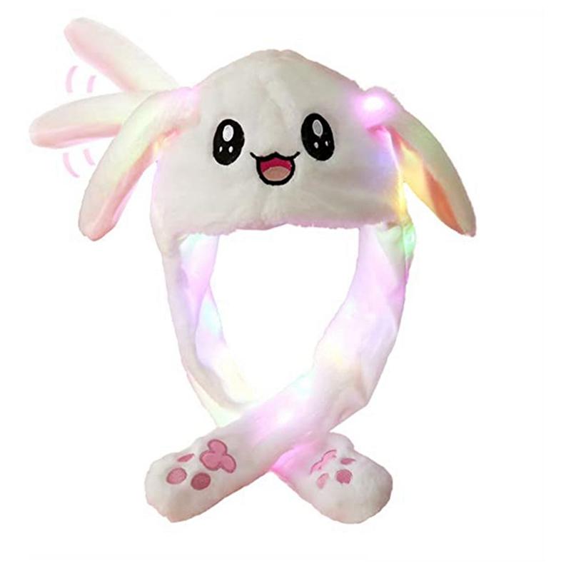 Шляпа с кроличьими ушками, подвижная шапка для прыжков, светодиодная светящаяся забавная плюшевая шапка с кроликом, кепка для косплея, вечерние, праздничная шапка для женщин и девочек