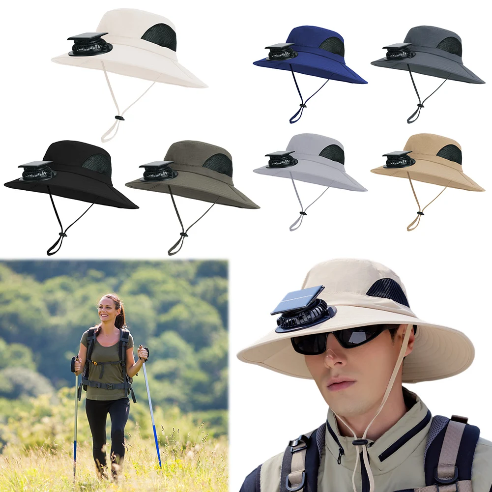 Шляпа с солнечным вентилятором и широкими полями, шляпа-ведро со съемным и USB-вентилятором для зарядки, уличная шляпа от солнца для лета, кемпинга, пляжа