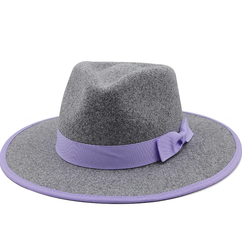 Шляпа-федора Женская/Мужская шерстяная, элегантная Панама с бантом и лентой, с широкими полями, джазовая церковная, серая, осенне-зимняя