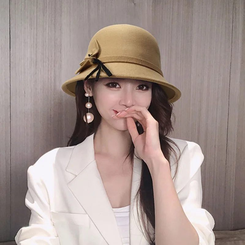 Шляпа фетровая Женская в винтажном стиле, элегантная шерстяная Панама с бантом, купольная фетровая Свадебная церковная джазовая шапка с бантом, котелок, Осень-зима