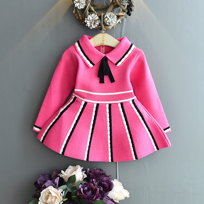 Teenster Little Girls Christmas Long Sleeve Princess Dresses Vestidos Fall Kids Clothes Bow Tie Stripes Knit Sweater Dress, Q31312-1