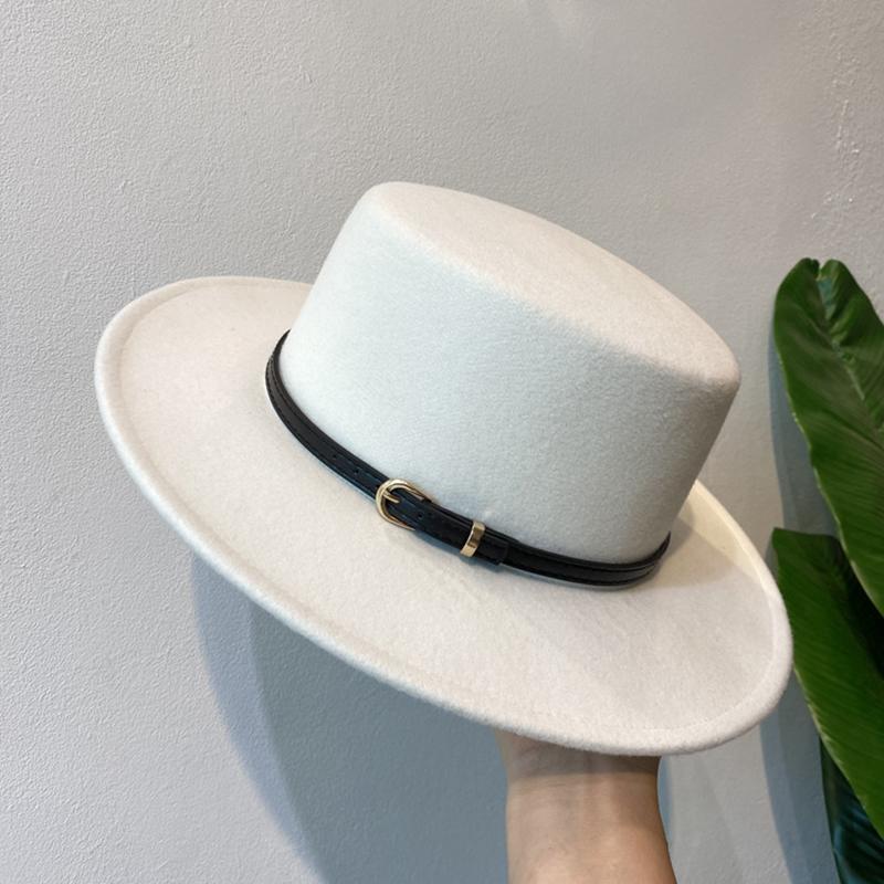 Шляпа фетровая шерстяная с пряжкой на ремне для женщин, фетровые шляпы с отворотами, ретро-кепка в стиле джаз, зима-осень, теплая британская кепка-канотье 56-58cm