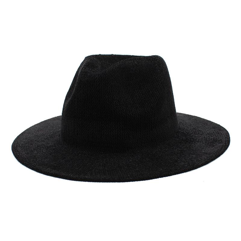 Шляпа Chenier Warm Jazz, модная вязаная однотонная мужская и женская ретро-шляпа, цилиндр, световая доска M(56-58cm) чёрный