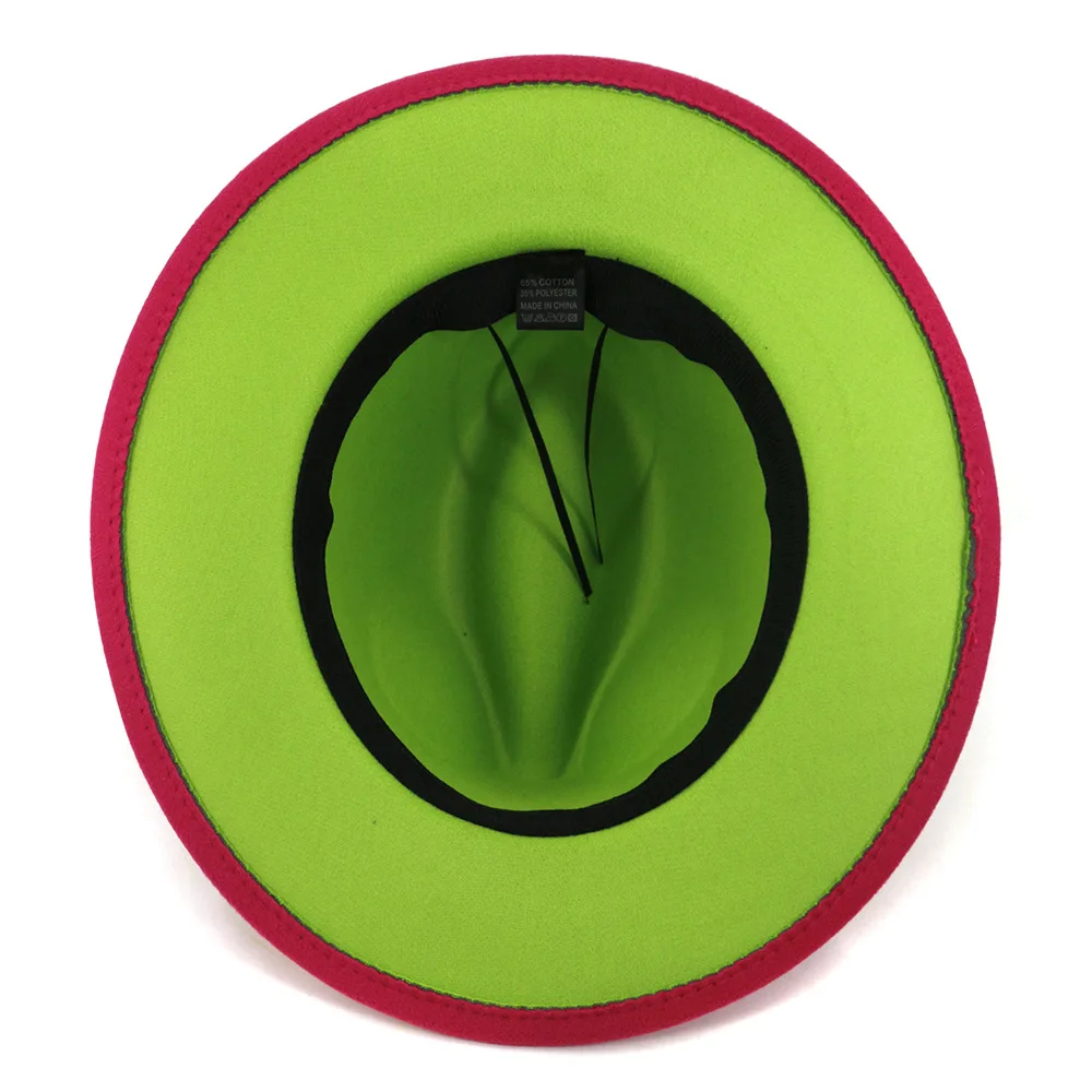 Шляпка фетровая Мужская в стиле ретро, модная Панама с широкими полями, пэчворк, летняя Панама из смеси шерсти, цвет зеленый/красный
