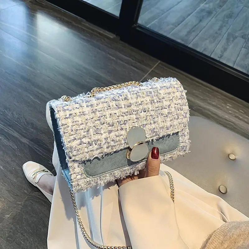 New trend chain plush messenger bag wild fashion shoulder bag messenger female bag small square bag purses crossbody