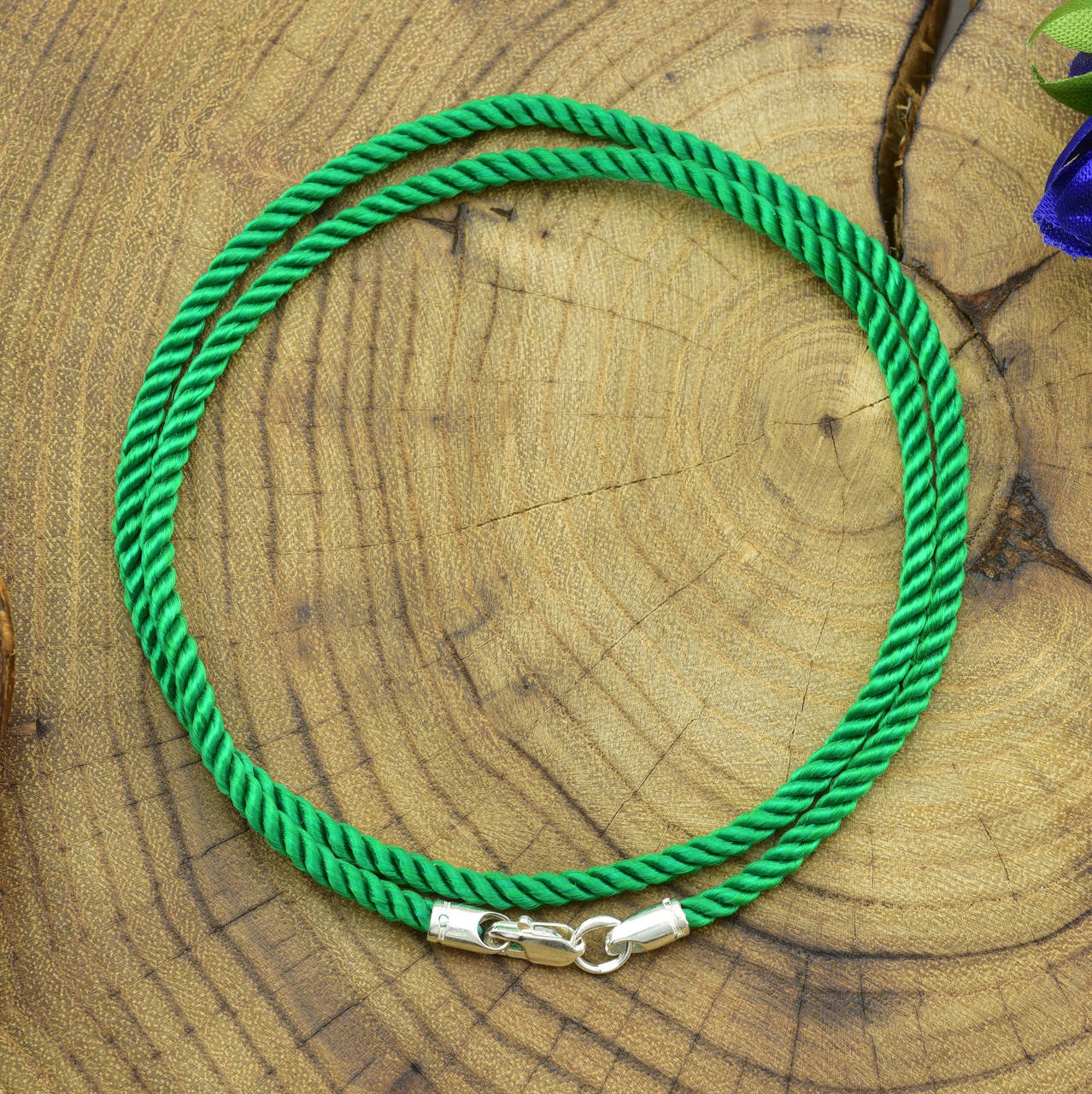 Шнурок плетённый шелковый цвет зеленый ширина 3 мм вес серебра 0.8 г длина 40