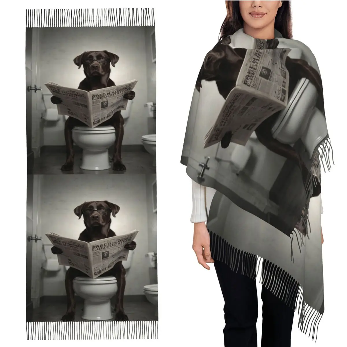Шоколадный лабрадор для чтения газет Шарф с кисточками Шарфы для женщин Мягкие теплые шали и накидки Большая осенне-зимняя шаль