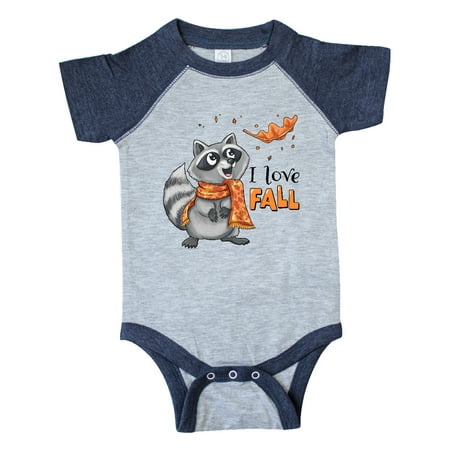 Inktastic I Love Fall Cute Raccoon with Scarf and Leaf Gift Baby Boy or Baby Girl Bodysuit