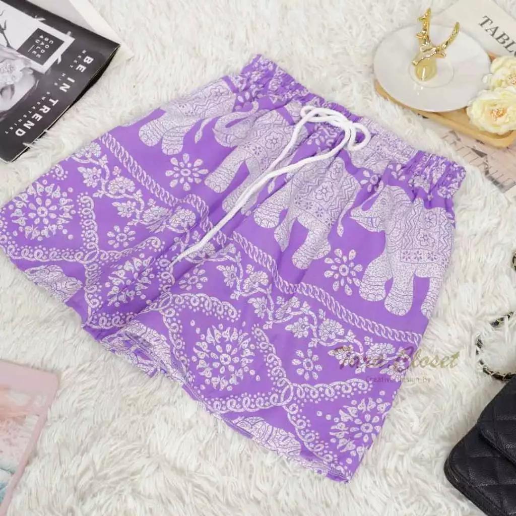 Шорты Слоны Брюки Регулируемая Эластичная Высокая Посадка Завязка Женские Мужские Унисекс Принт Таиланд Повседневная Уличная Одежда Пляжная Богемная Ретро Винтаж One Size