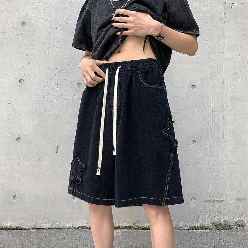 Шорты в стиле пэчворк со звездами, мужские винтажные джинсовые летние базовые простые универсальные горячая распродажа с высокой талией для отдыха в стиле уличной одежды Ulzzang, шикарные шорты XXXL чёрный