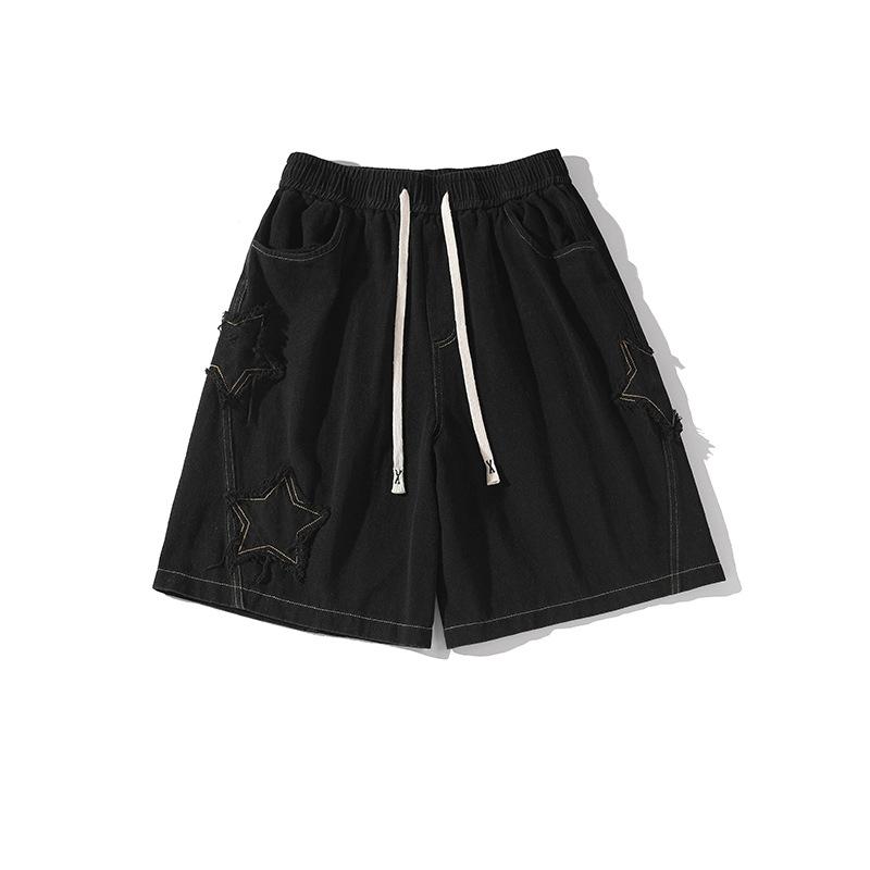 Шорты в стиле пэчворк со звездами, мужские винтажные джинсовые летние базовые простые универсальные шорты с высокой талией для отдыха в стиле уличной моды Ulzzang, шикарные шорты XXL чёрный