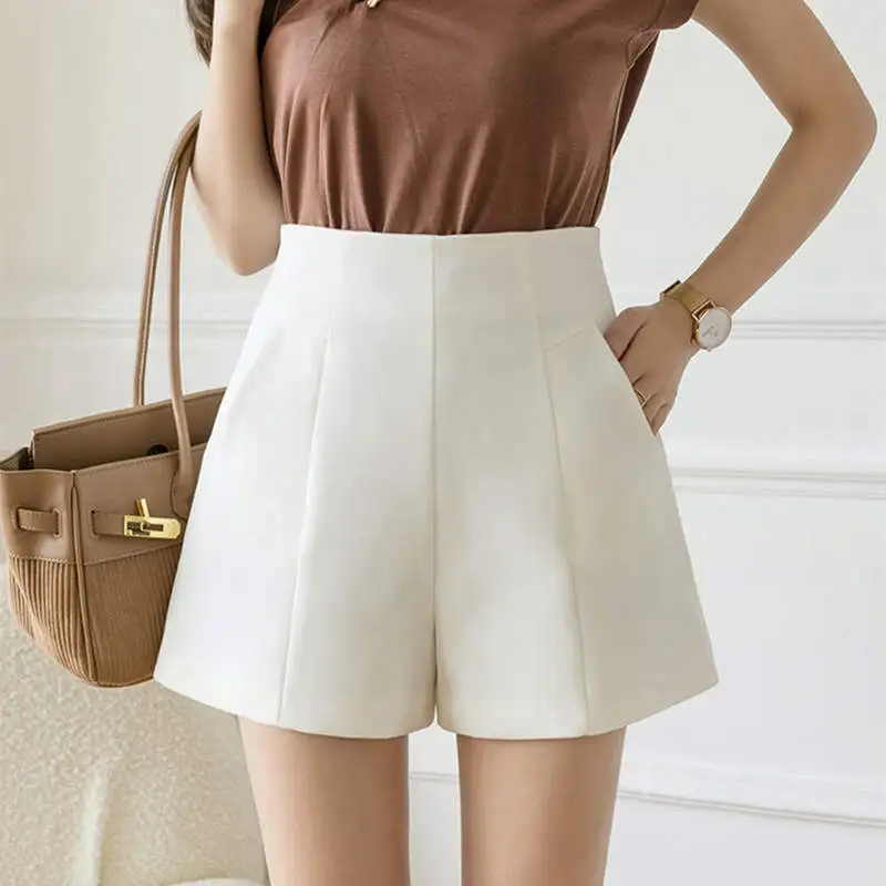 Шорты женские шифоновые с завышенной талией, модные Свободные повседневные широкие офисные Костюмные шорты в Корейском стиле, белые черные...