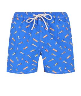 -Шорты для плавания с принтом из быстросохнущего 100% переработанного материала от MC2 SAINT BARTH.-Модель средней длины выше колена, средняя посадка, эластичный пояс на кулиске, прорезные карманы, внутренняя легкая подкладка из сетки.-Люверсы, расположенные чуть ниже пояса, предотвращают надувание шорт при погружении в воду.Данный товар обмену и возврату не подлежит, доставка осуществляется при условии предварительной оплаты.