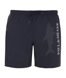 -Темно-синие шорты для плавания от PAUL&SHARK. -Модель выполнена из легкого прочного полиэстера, который быстро сохнет и долго сохраняет насыщенный цвет и дополнен крупным светоотражающим логотипом и изображением знаковой акулы.-Средняя посадка, эластичный пояс на кулиске, прорезные карманы.Данный товар обмену и возврату не подлежит, доставка осуществляется при условии предварительной оплаты картой.