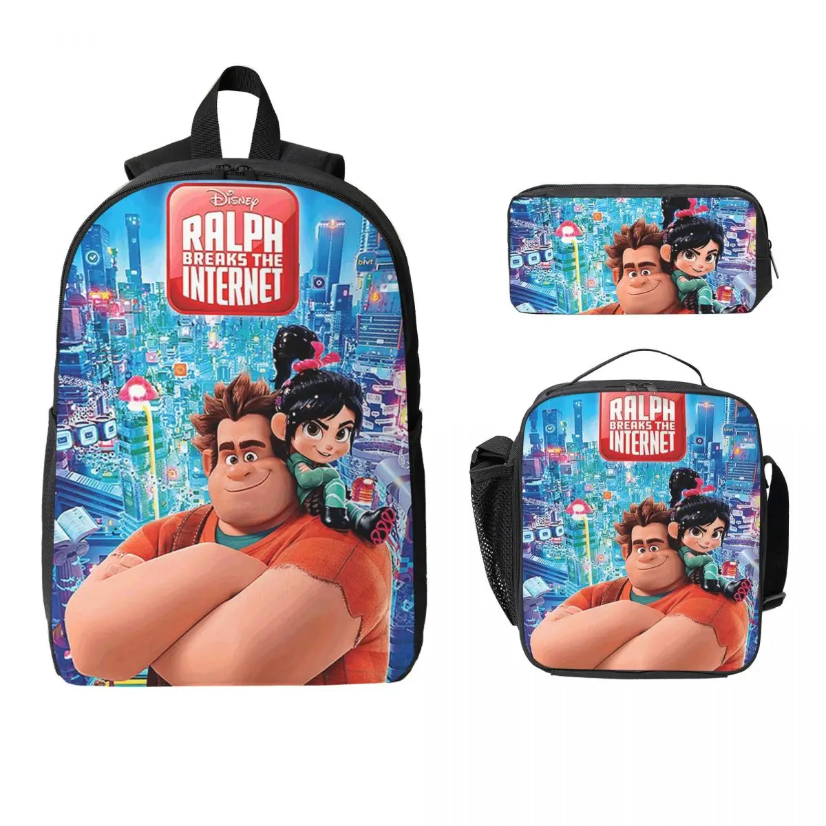 Шорты Wreck-It Ralph Рюкзак Студенческий Сумка для книг для мальчиков и девочек Школьная сумка Компьютерные сумки на плечо 3 шт. Изолированная сумка для обеда Пенал