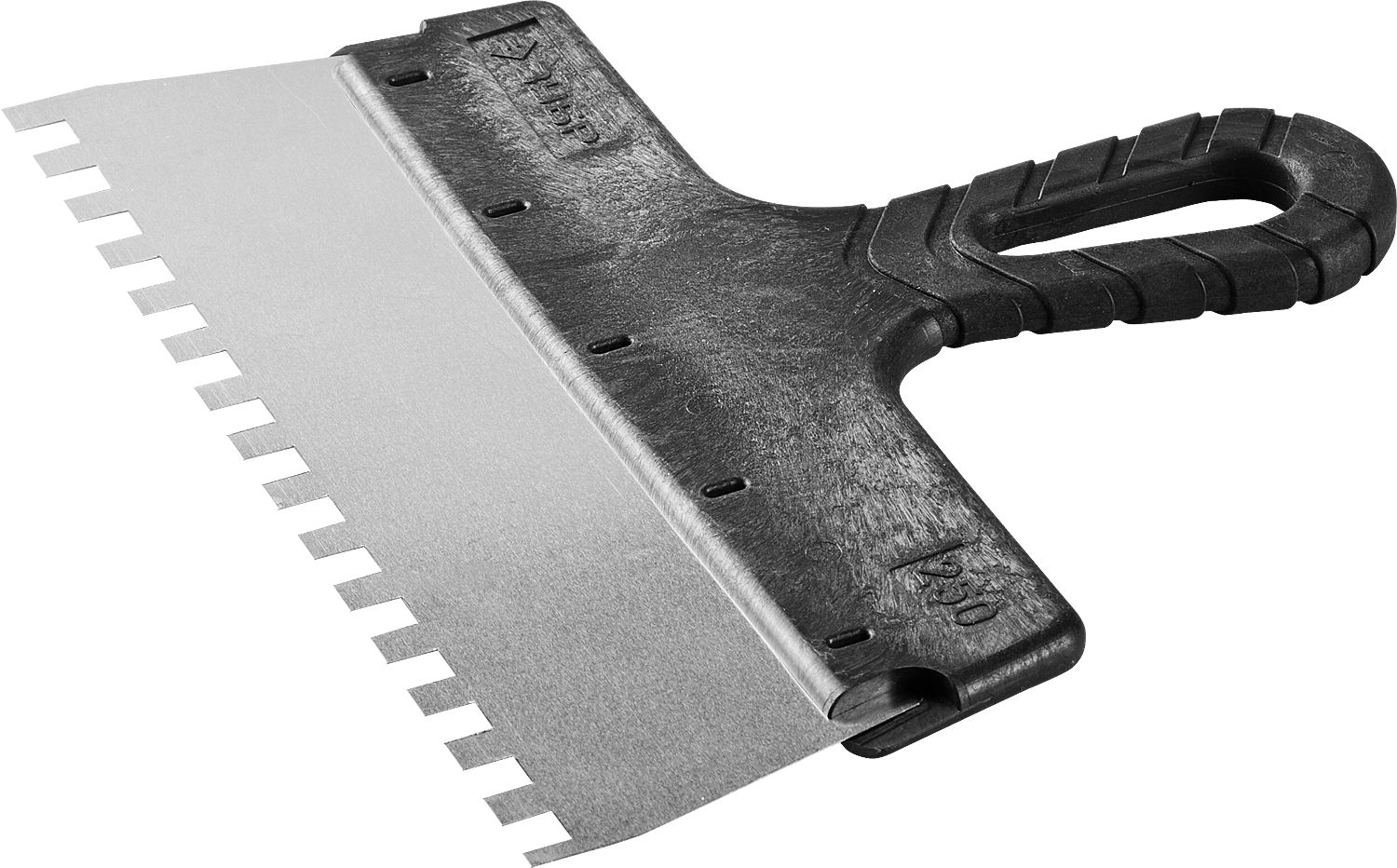 Шпатель Зубр МАСТЕР, зубчатый, лезвие 250мм, размер зубьев 8х8мм, нержавеющая сталь, для клея (10078-25-08), Стальной