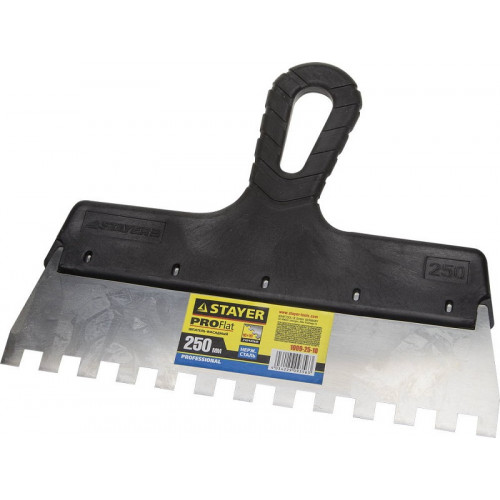 Шпатель Stayer PROFESSIONAL, зубчатый, лезвие 250мм, размер зубьев 10х10мм, нержавеющая сталь, для клея (1009-25-10), Стальной