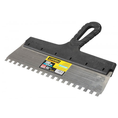 Шпатель Stayer PROFESSIONAL, зубчатый, лезвие 300мм, размер зубьев 8х8мм, нержавеющая сталь, для клея (1009-30-08), Стальной