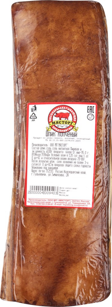 Шпик МЯСТОРГ копченый в/у вес до 800г