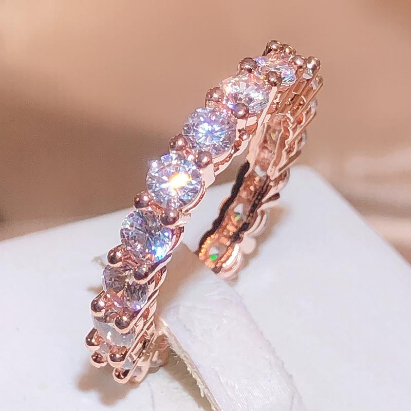 Штамп Мода Белый Цирконий Ряд Бриллиантовое Кольцо Женщины Тонкое Кольцо Розовое Золото Вечеринка Свадьба Подарок на День Рождения 10