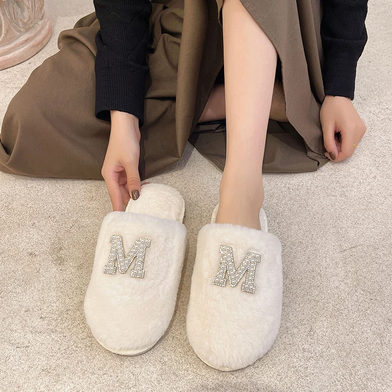 Зимние женские тапочки, хрустальные теплые меховые тапочки, Нескользящие домашние хлопковые домашние тапочки, женские меховые сланцы, Повс...