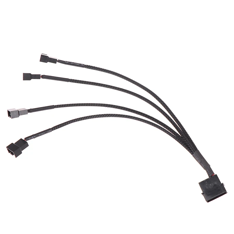 Штепсельная Вилка для блока питания IDE Molex, охлаждающий вентилятор с черным рукавом и 4 разъемами, для ПК, компьютера