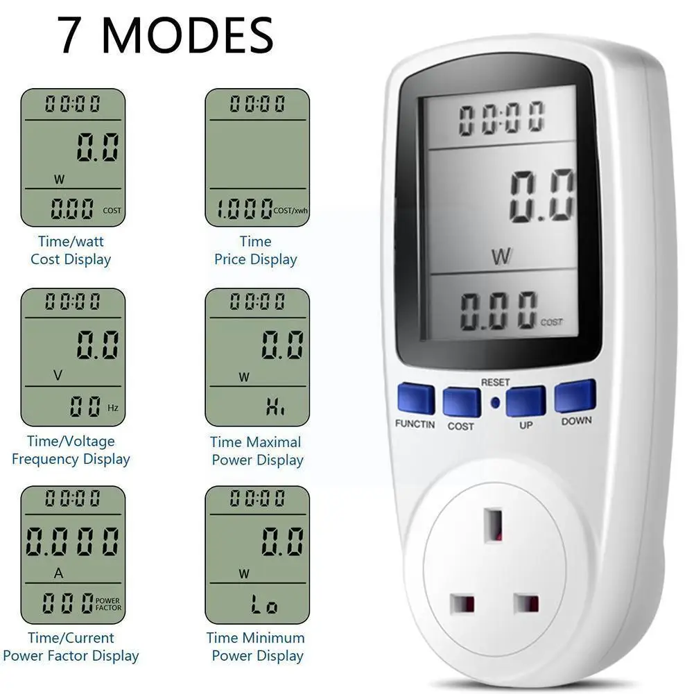 Штепсельная розетка стандарта Великобритании цифровой ваттметр напряжения Потребляемая мощность ватт измеритель энергии для кВт/ч переме...