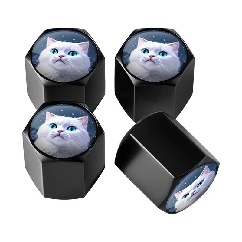 Шток клапана шины автомобиля колпачки, резиновая прокладка против утечек, 3D Рисунок кошки, колпачок для стержня клапана шины, Высококачественная алюминиевая металлическая крышка для стержня