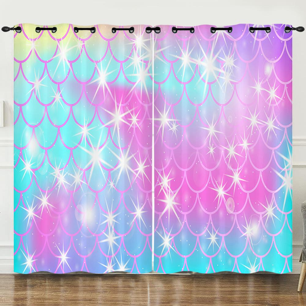 Штора Яркий Цвет Плавный Переход Солнцезащитная Цифровая Печать Светонепроницаемая Штора Без Пробивки Спальня Гостиная 97cm*114cm*2