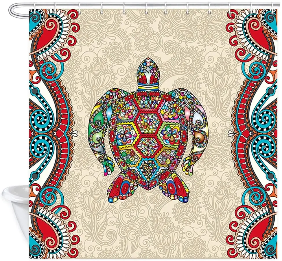 Штора для душа с морской черепашкой, занавеска для ванной из полиэстера, в богемном стиле ретро, с цветочным узором, акварель, морская черепа...