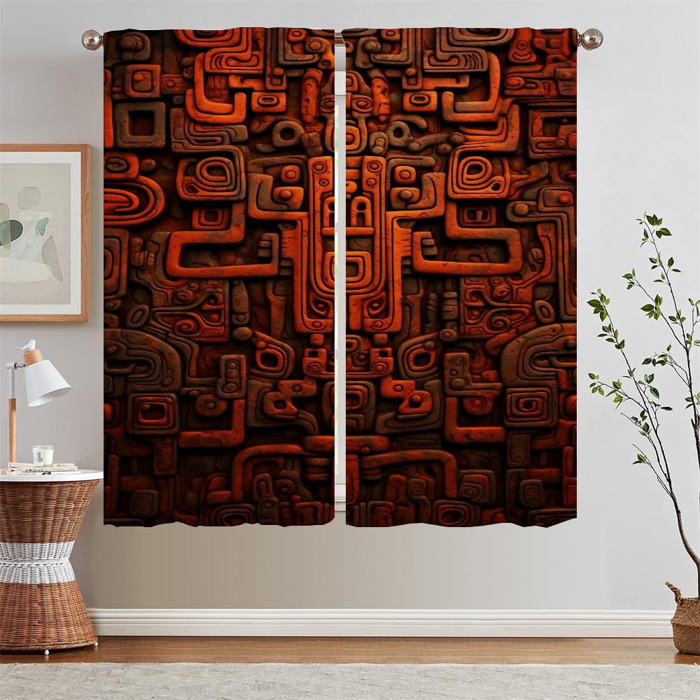 Шторные подхваты в стиле племенного тотема, кухонные шторы, набор 2 шт., светонепроницаемые шторы для украшения гостиной, оконные жалюзи W50xH70cmx2pcs-CL