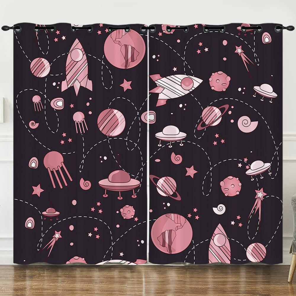 Шторы Звездное небо Космический корабль Цифровая печать Светонепроницаемые шторы Без сверления Спальня Гостиная Украшение 97cm*114cm*2