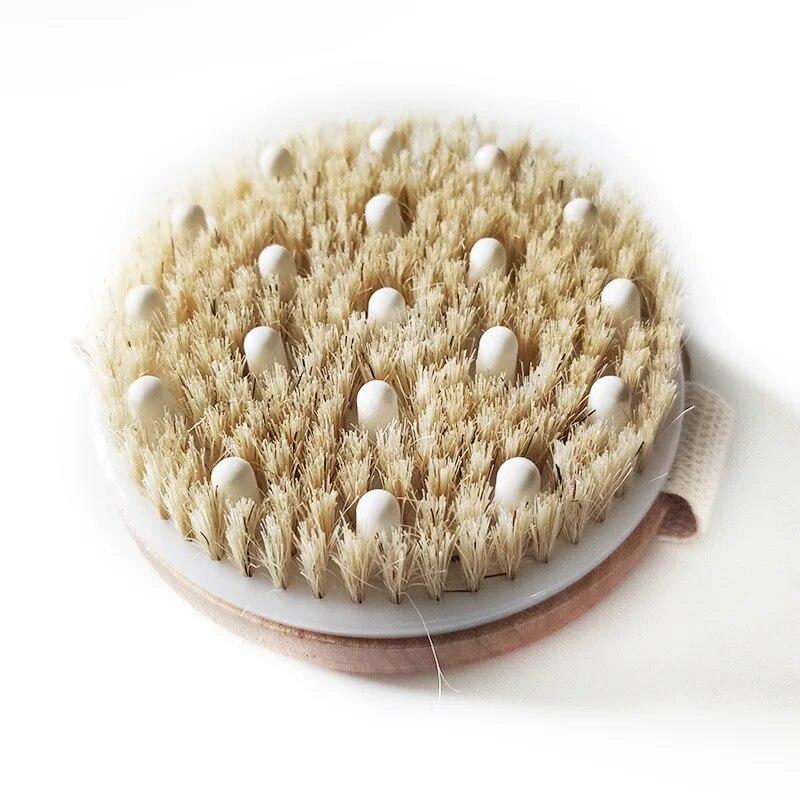 Щетка для ванны из свиной щетины, массажная спина, ручная нейлоновая мягкая щетка для душа, сухая деревянная круглая щетка для ванны