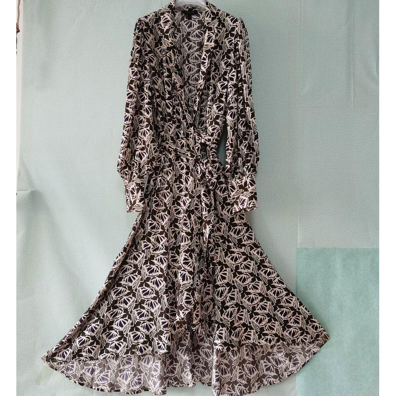 Экспорт Мода Оригинальный Одиночный Крой Этикетка Складной Шнурок Затянутая Талия Стильное Платье Стильный Нишевый Стиль Принт Длинная Юбка Высокий Camel Print XL