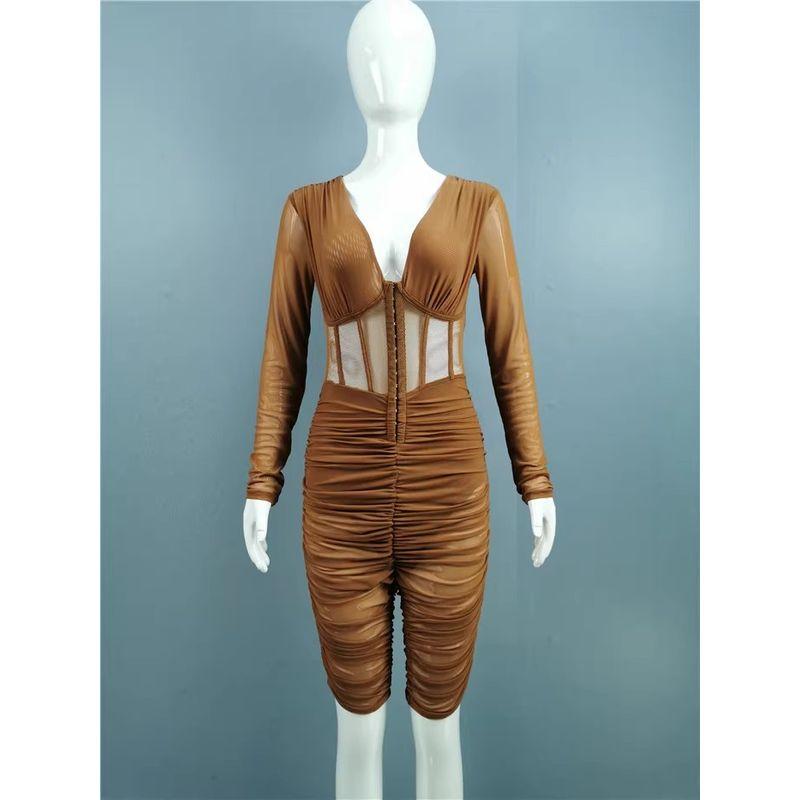 Экспорт Однотекстурная Сетка Уличная Крутая Мода Европейский и Американский Стиль Комбинезон Со сборками Белье Талия Коррекция Фигуры Шорты Женщины CHECOLATE M
