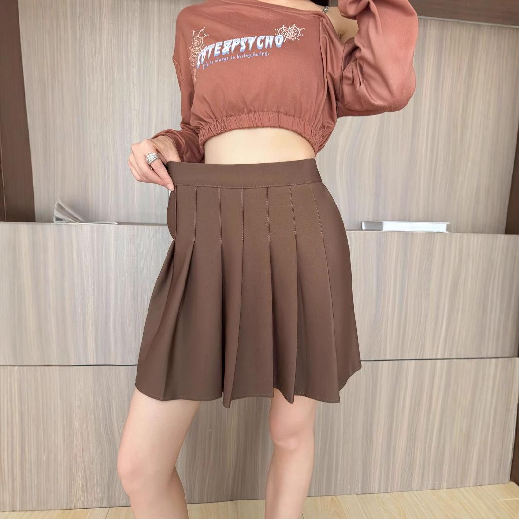 Эластичная плиссированная юбка с высокой талией Женская А-силуэта Тонкая короткая юбка Маленькая Весна и Лето Однотонная плиссированная юбка 3XL