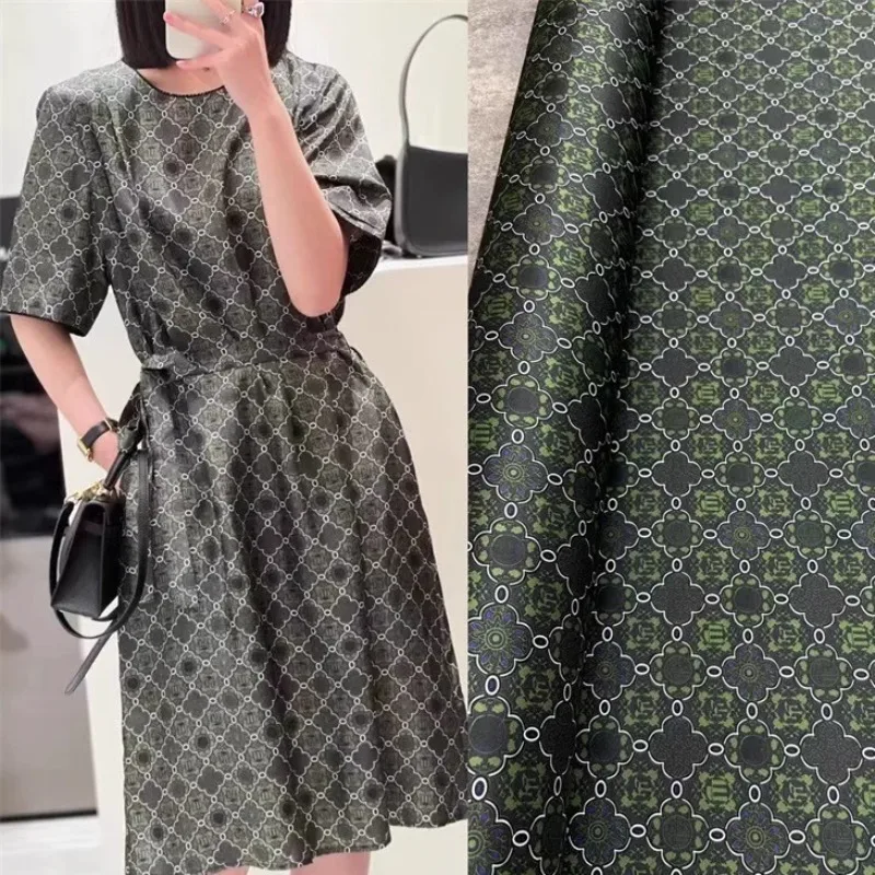 Эластичная саржевая шелковая ткань с принтом черно-зеленых клетков для шитья своими руками, 95% шелк, 5% ткань из спандекса для платья, пижамных брюк, R2342