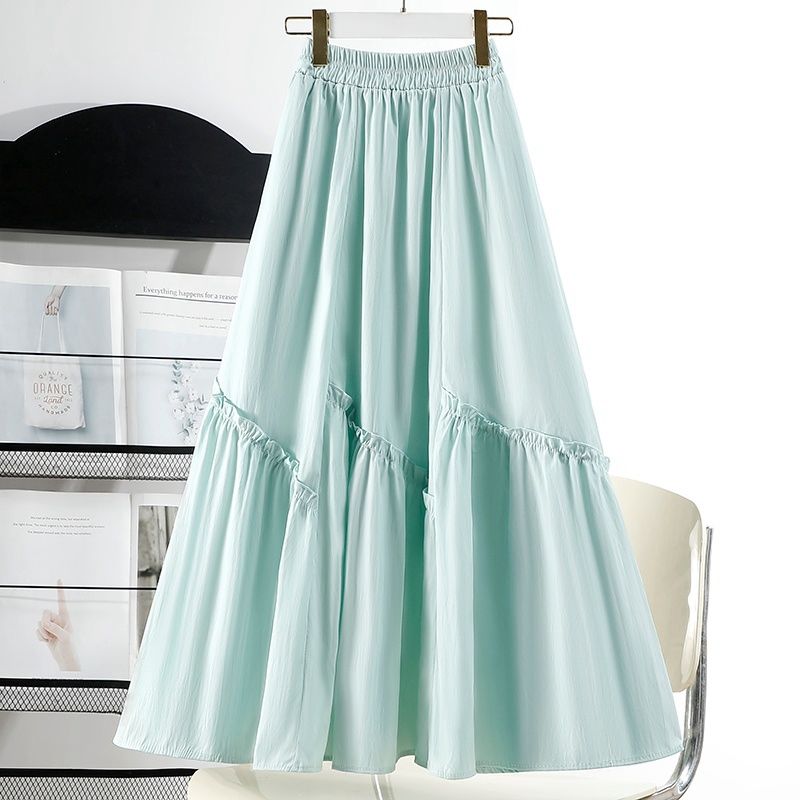 Эластичная талия Юбка феи - Весенне-летняя асимметричная ретро миди-юбка с оборками, лоскутная А-силуэта длинная юбка S зелёный